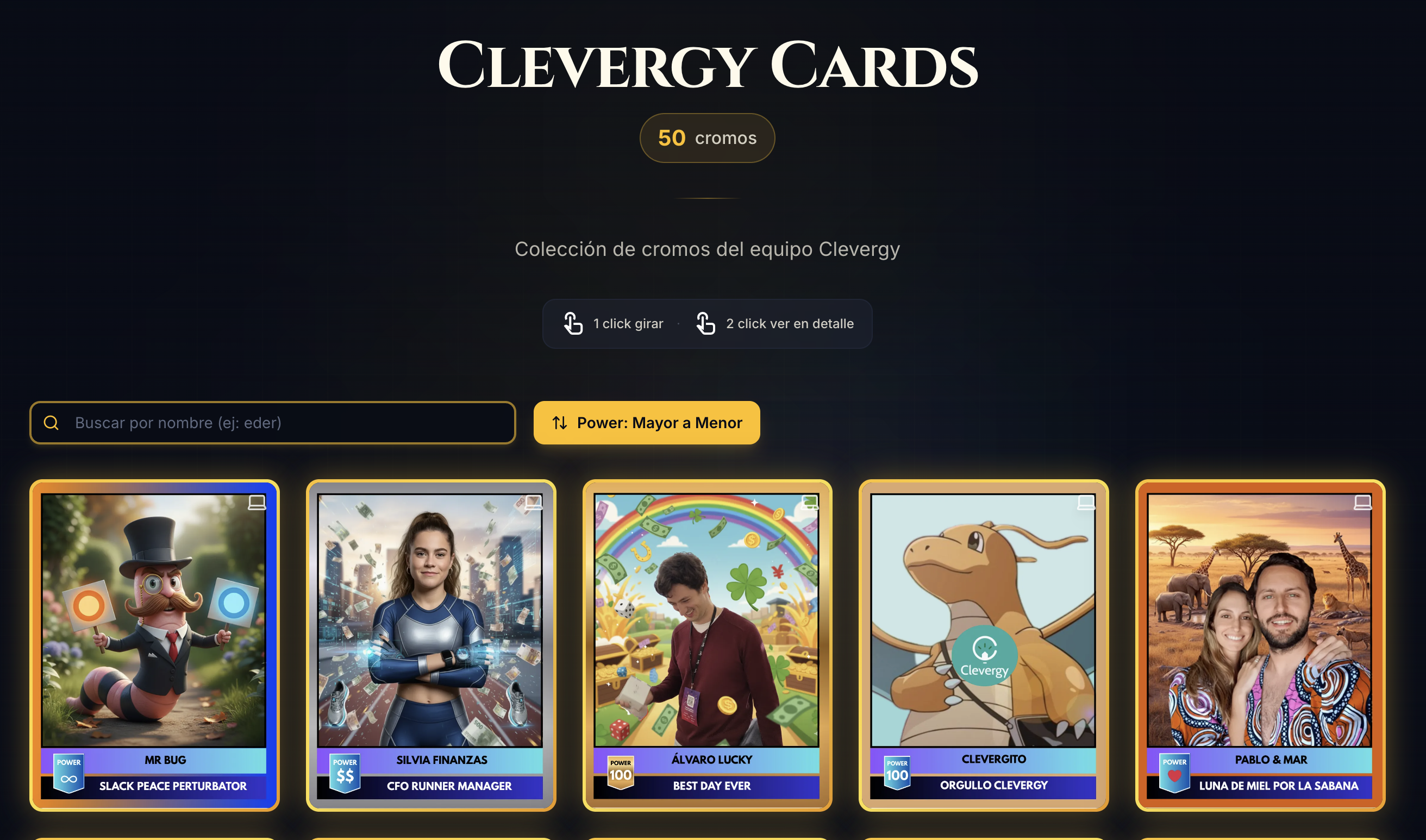 La web interactiva resolvía un problema real del retreat anterior: la gente se quedaba solo con su propio cromo y no veía los de los demás. Con esta web, cualquiera podía ver de forma sencilla e interactiva la colección completa de todo el equipo: clevergy-cards.pages.dev.